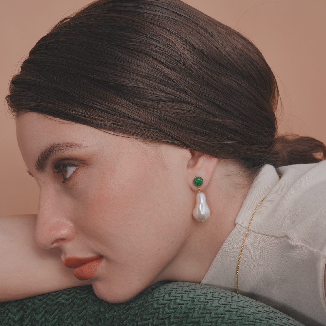 Deux pearl drop earrings (Malachite)