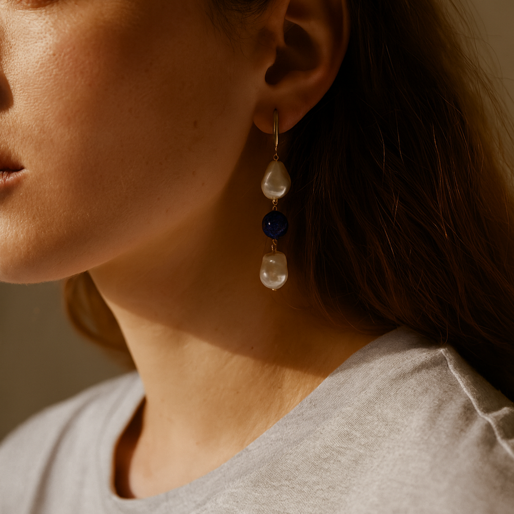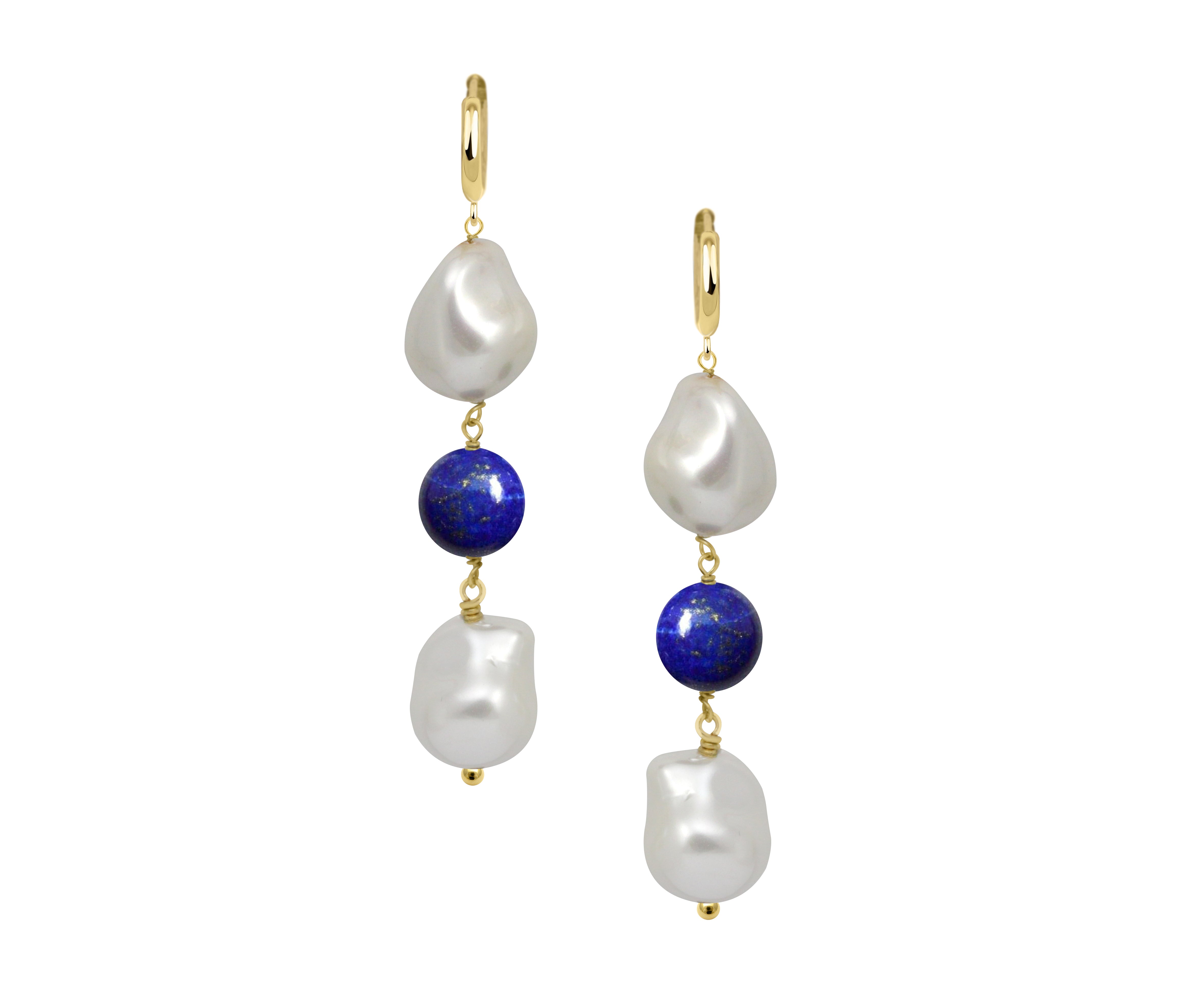 Deux pearl drop earrings (Lapis)