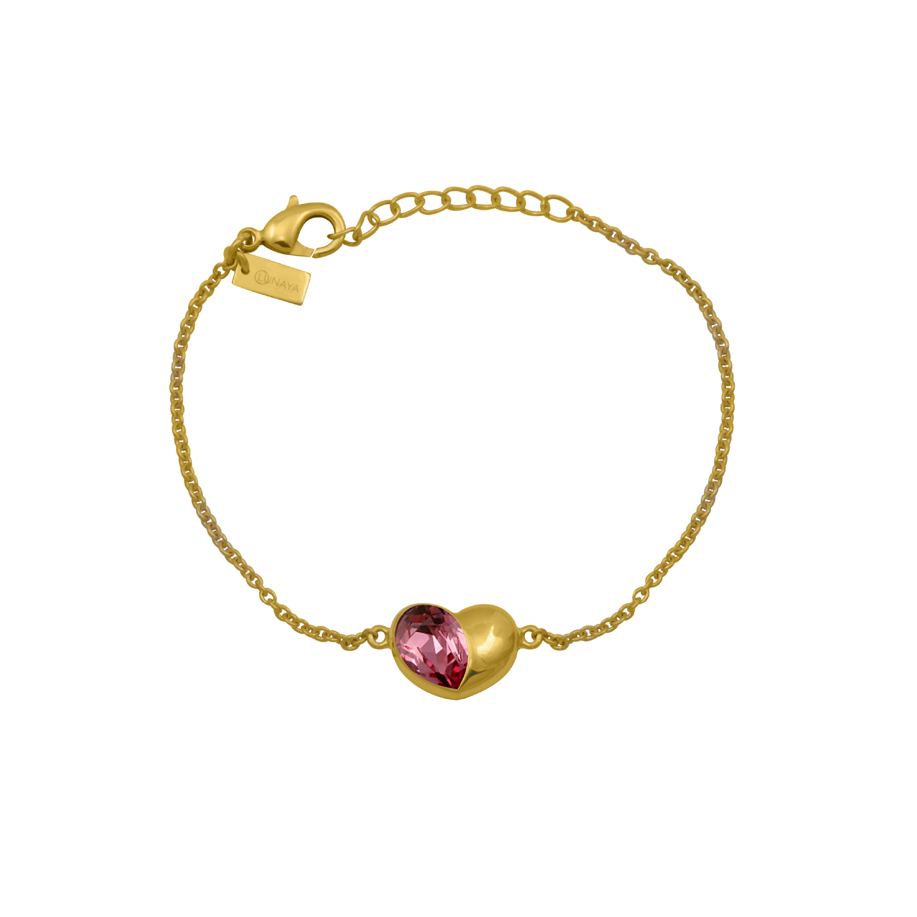 Double Heart Bracelet With Pink Stone