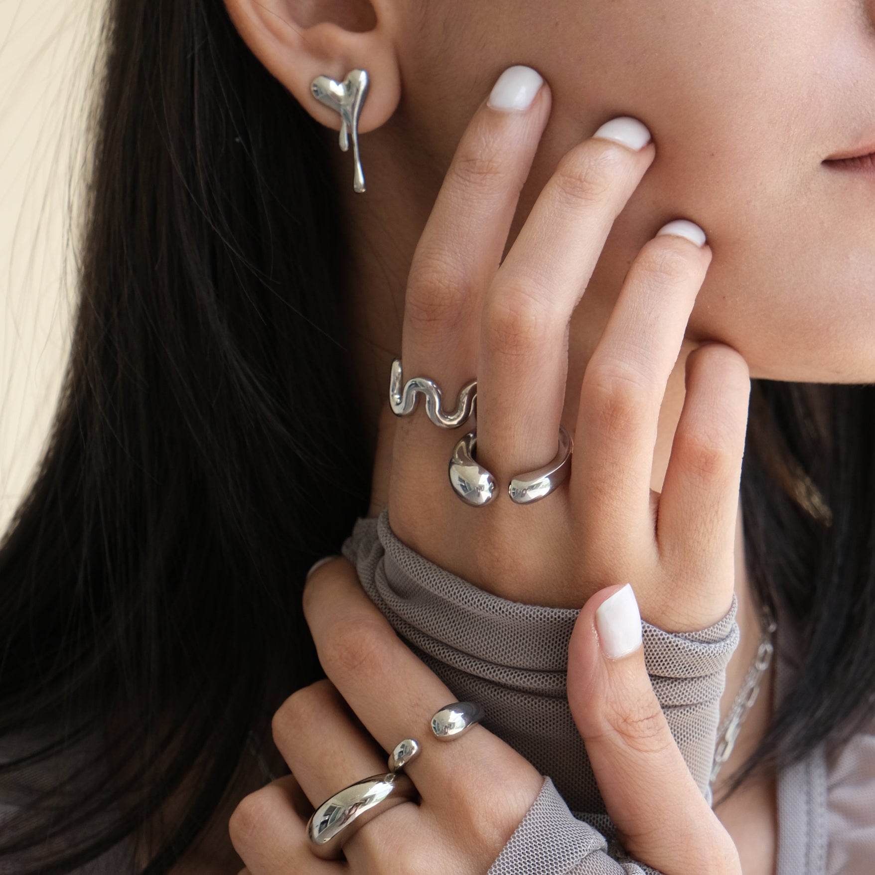 XL Melting Heart With Paperclip Chain (Silver)