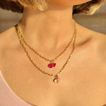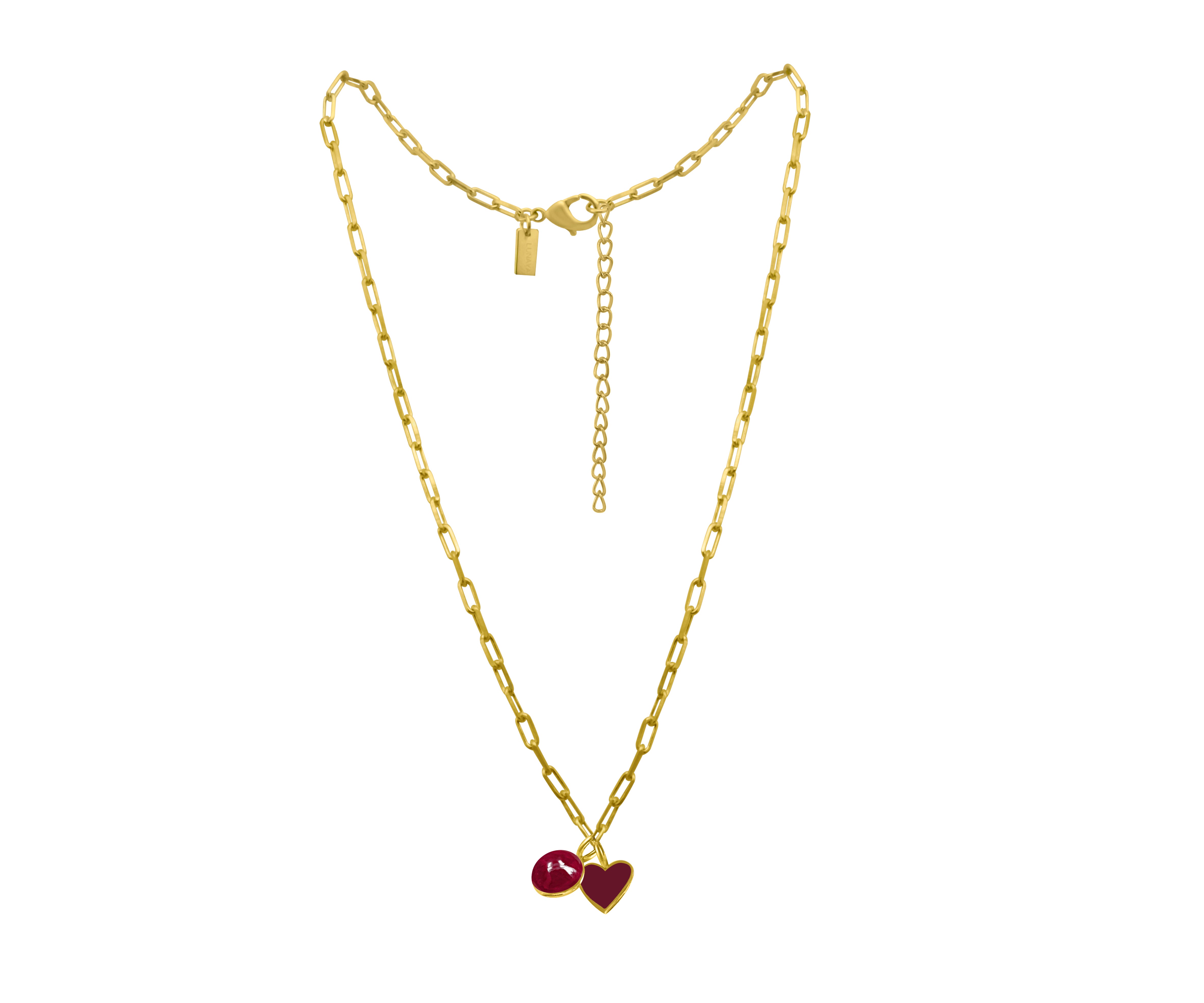 Small Link Chain with Ruby & Red Heart