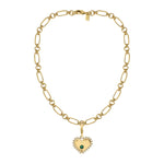 Double loop chain + Halo heart charm with Malachite & CZ.