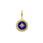 The Cosmic Lapis Charm pairs a rich lapis lazuli stone with sparkling white CZ accents in a celestial inspired setting. A swirl of vivid green malachite meets sparkling white CZ in the Cosmic Malachite Charm. Clip it onto any chain or cord for a bold statement. 18K gold plated brass, lobster clasp. Length: 3.3cm.